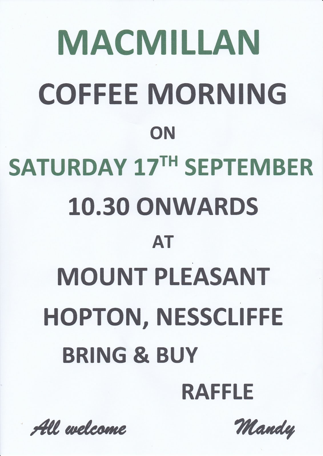 This will be the 19th Annual Macmillan Coffee Morning at Mount Pleasant. During that time you have raised £6,392 all of which has been spent in Shropshire.